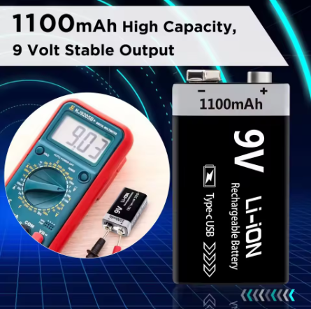 BATERIA 9V RECARGABLE CON CABLE USB TIPO C